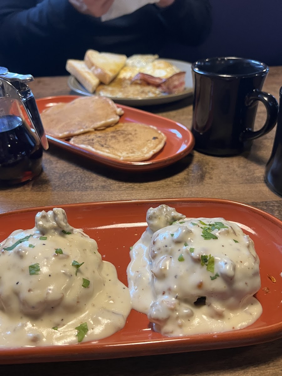 We came here at random while passing through the area for the night, very glad we did and sad we don’t live close to come back! We looked ahead at the menu, the prices were right and everything sounded good. We had a hard time choosing what to order but everything we had was great! I actually chose based on another review of the skillets. Our server was great, she was obviously multitasking but was still attentive. We were able to sit outside to enjoy the weather but the inside atmosphere seemed enjoyable as well. Parking is tight as mentioned in a lot of reviews, we were lucky enough to get the only open spot. Bigger vehicles would have a hard time parking here.