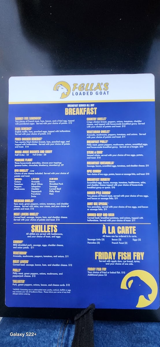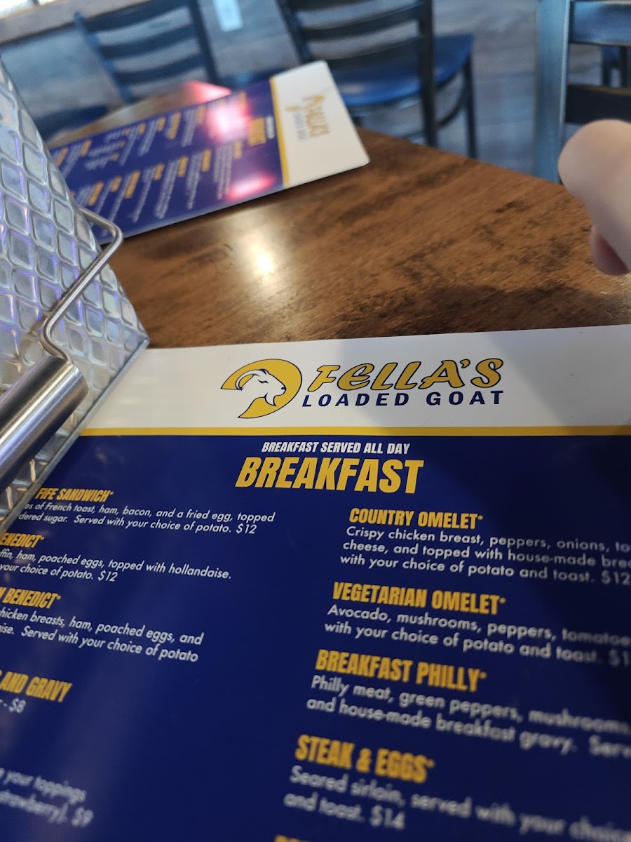 Fella's Loaded Goat Restaurant & Bar offers a straightforward and inviting menu that suits both casual breakfasts and relaxed evenings. The menu features hearty, comforting dishes that pair well with the warm, friendly atmosphere of the space. Whether you're stopping in for a morning meal or enjoying a laid-back night out, you’ll find options that feel familiar and satisfying.