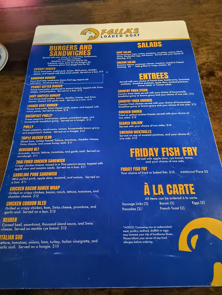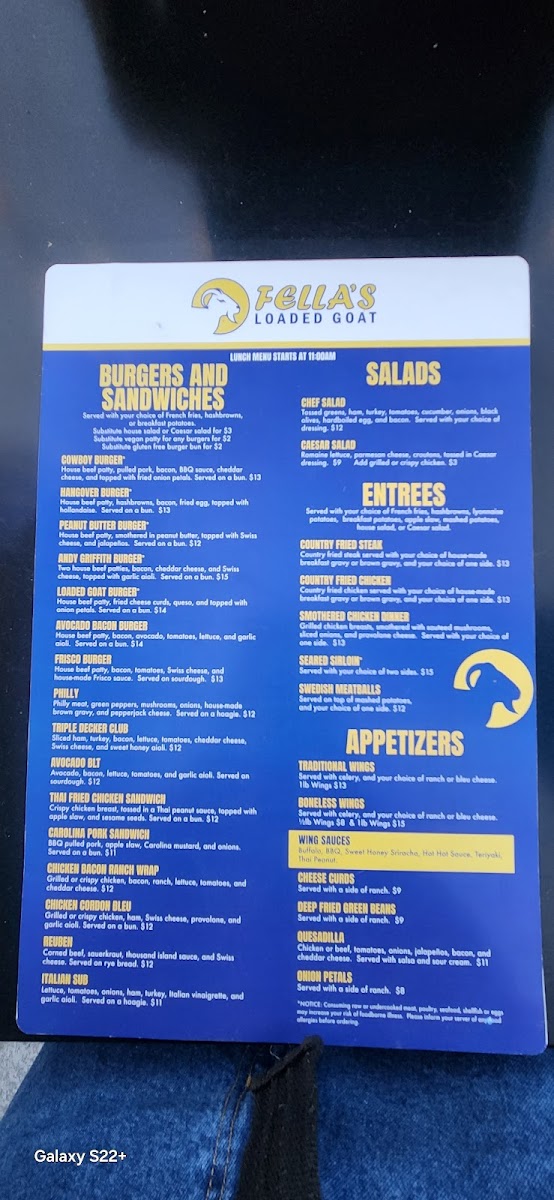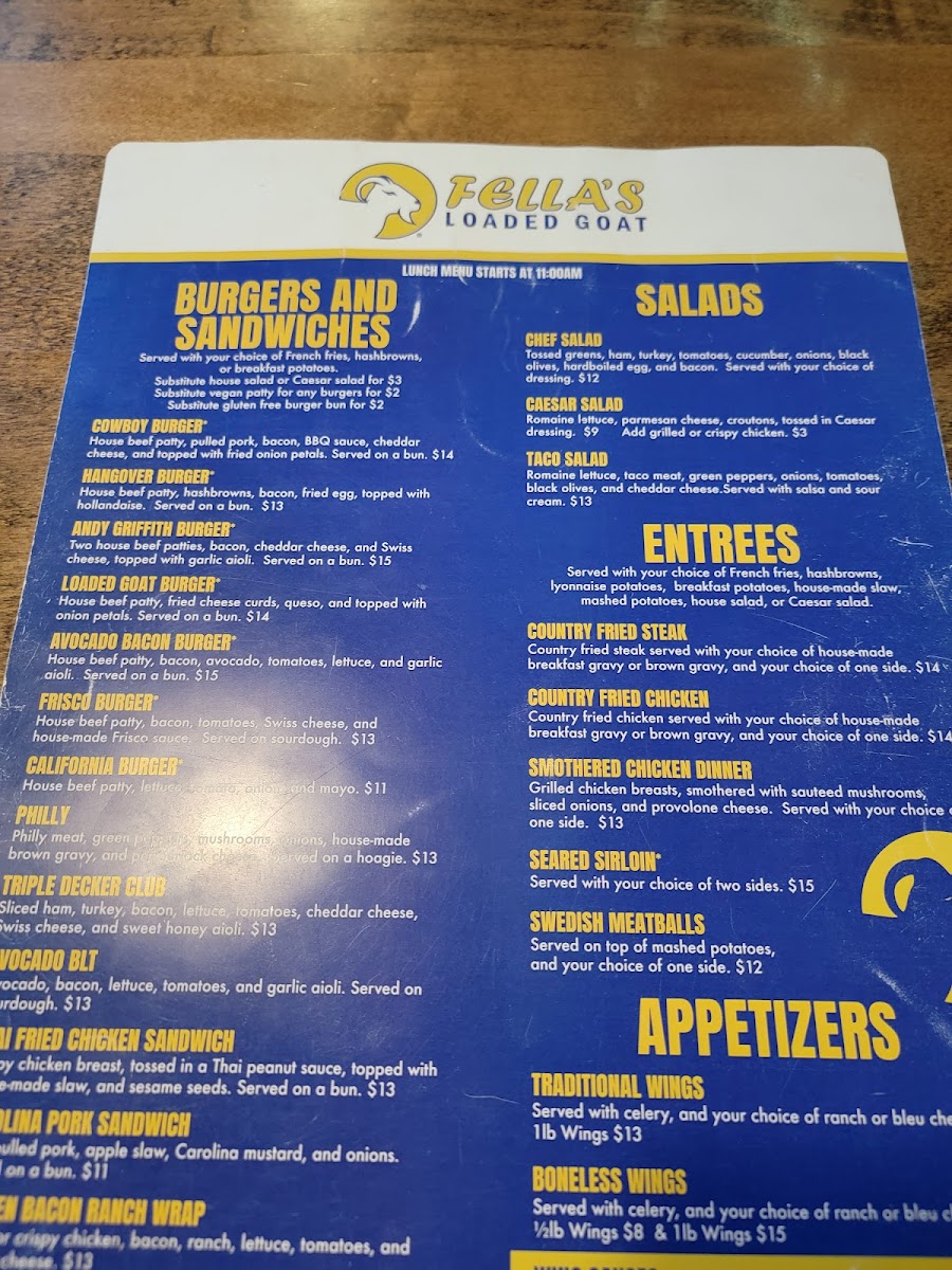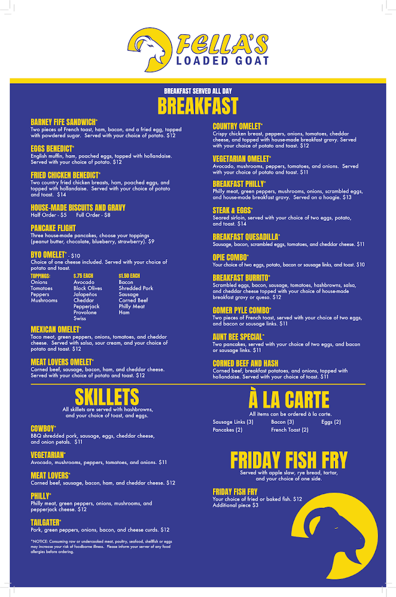 Fella's Loaded Goat Restaurant & Bar Menu